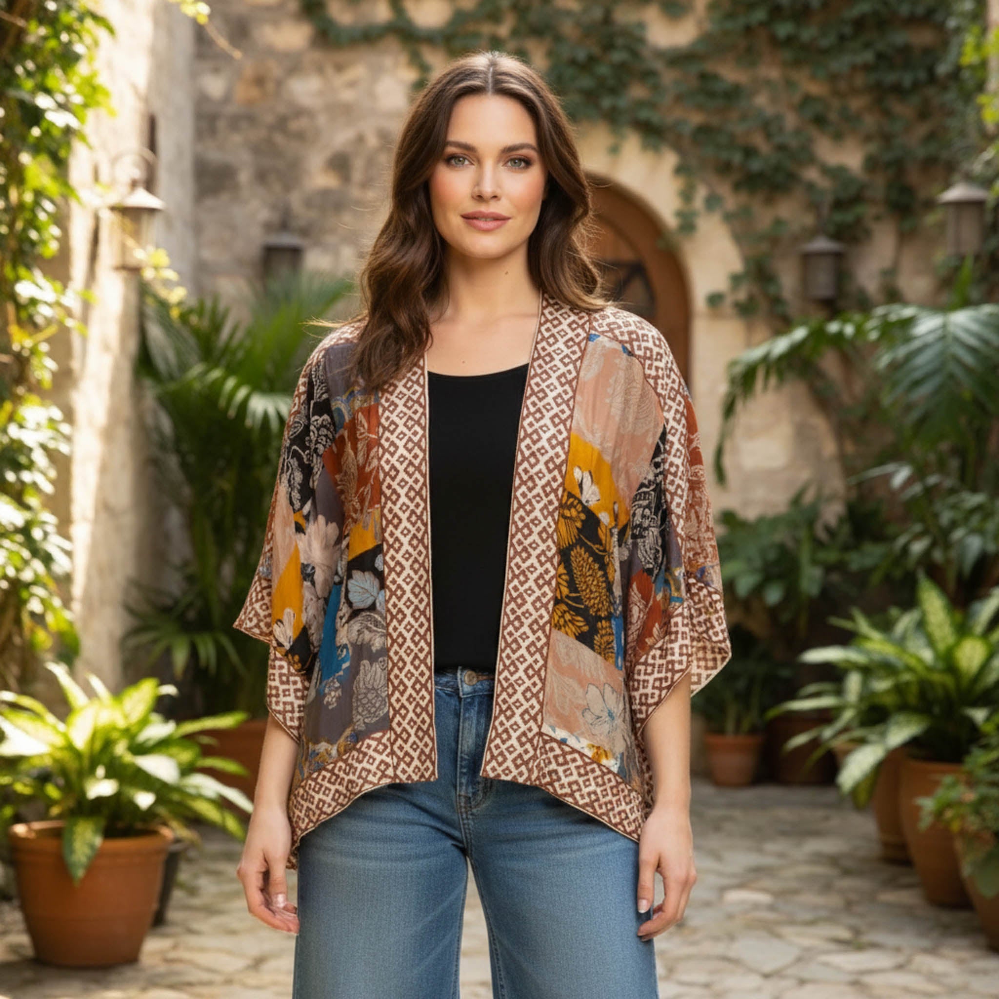 Elevate your wardrobe with the Raelyn Mustard Kimono. Its stunning floral design, accented with gold and warm brown hues, adds a bohemian touch to any outfit. The relaxed fit and wide sleeves provide comfort and versatility, making it a must-have layering piece for any occasion. One size fits all, from XS to XL.