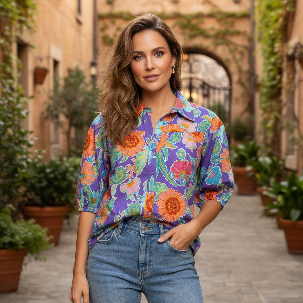 Introducing the Mitch Garden Top, a versatile blouse with puff sleeves, button down closure, and a classic collar. Expertly crafted for a polished look. Elevate any outfit with this timeless piece.
