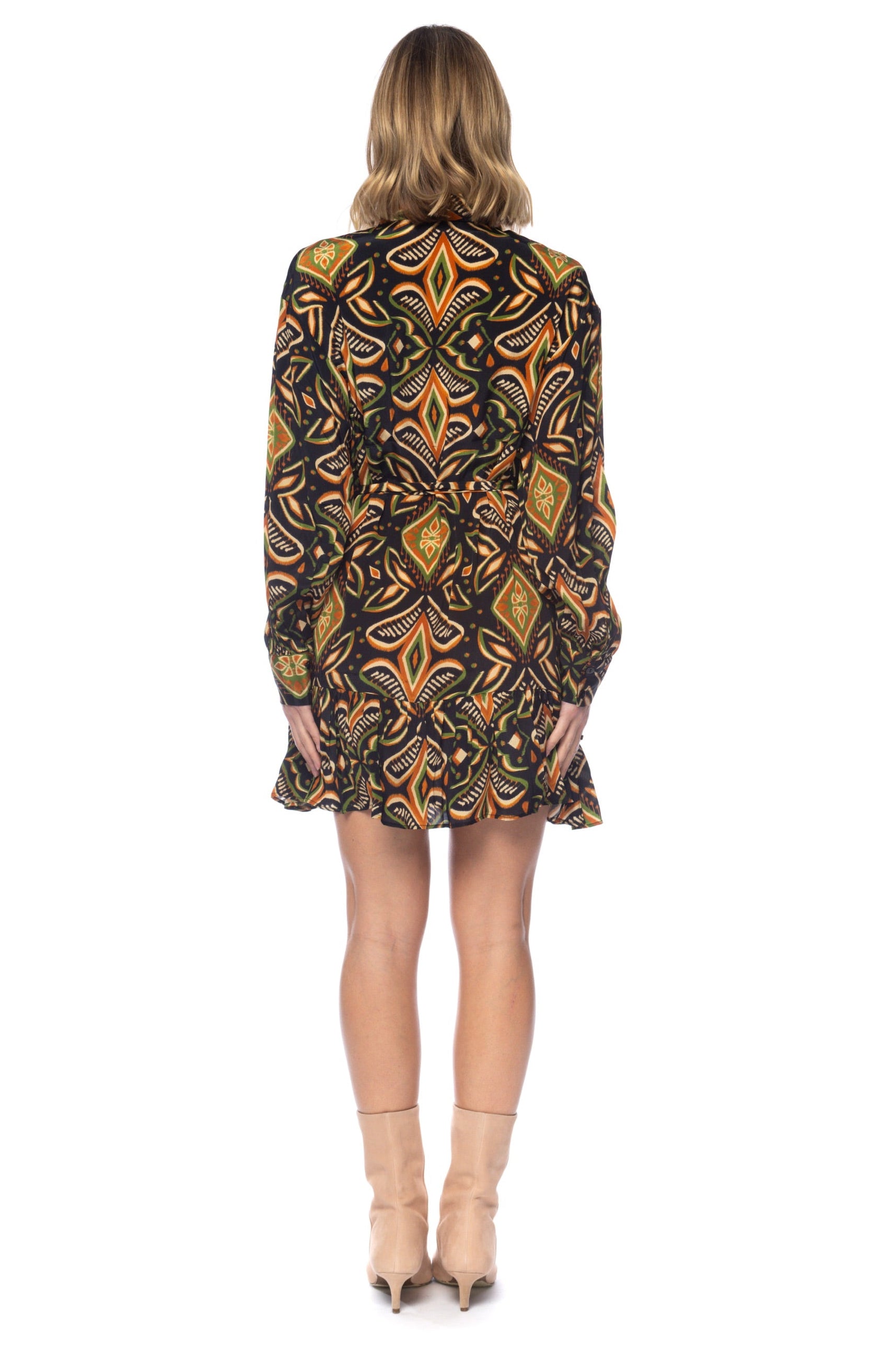 Infused with bold energy and free-spirited style, the Madge Cactus Shirt Dress captures the essence of effortless sophistication. Featuring a striking kaleidoscopic print in rich tones of amber, olive, and onyx, this button-front dress is designed to move with you. The soft, flowy fabric drapes beautifully, while the belted waist flatters your silhouette and adds a touch of structure. Long sleeves with button cuffs and a classic collar complete the look, making it perfect for everything from brunch with friends to an evening out.
