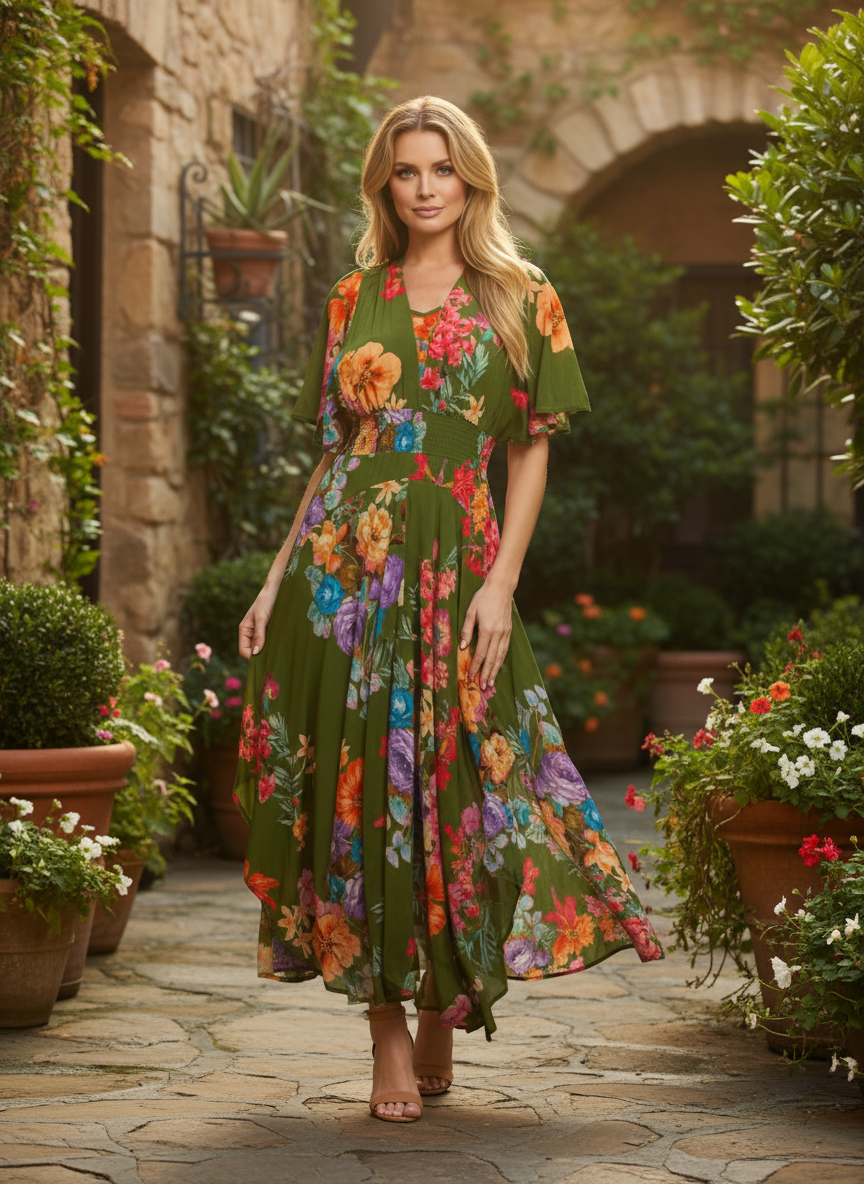 As a product expert, I highly recommend the Daphne Garden Dress. Its bold colors and fun energy make a bold fashion statement. The cinched waist and midi length offer both comfort and shape, while the front slit adds a touch of allure. Perfect for any occasion, this dress is versatile and stylish.