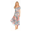 Effortlessly elevate your style with our Irina Ikat Dress. Designed for busy mornings, this long dress features a V-neck and front tie for a polished look. The asymmetrical hem adds a touch of modern flair. Simply throw it on and conquer your day with ease.