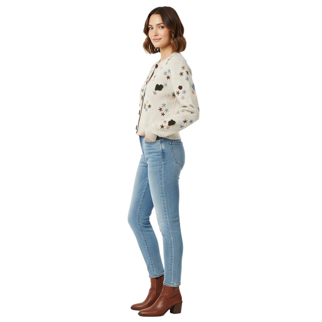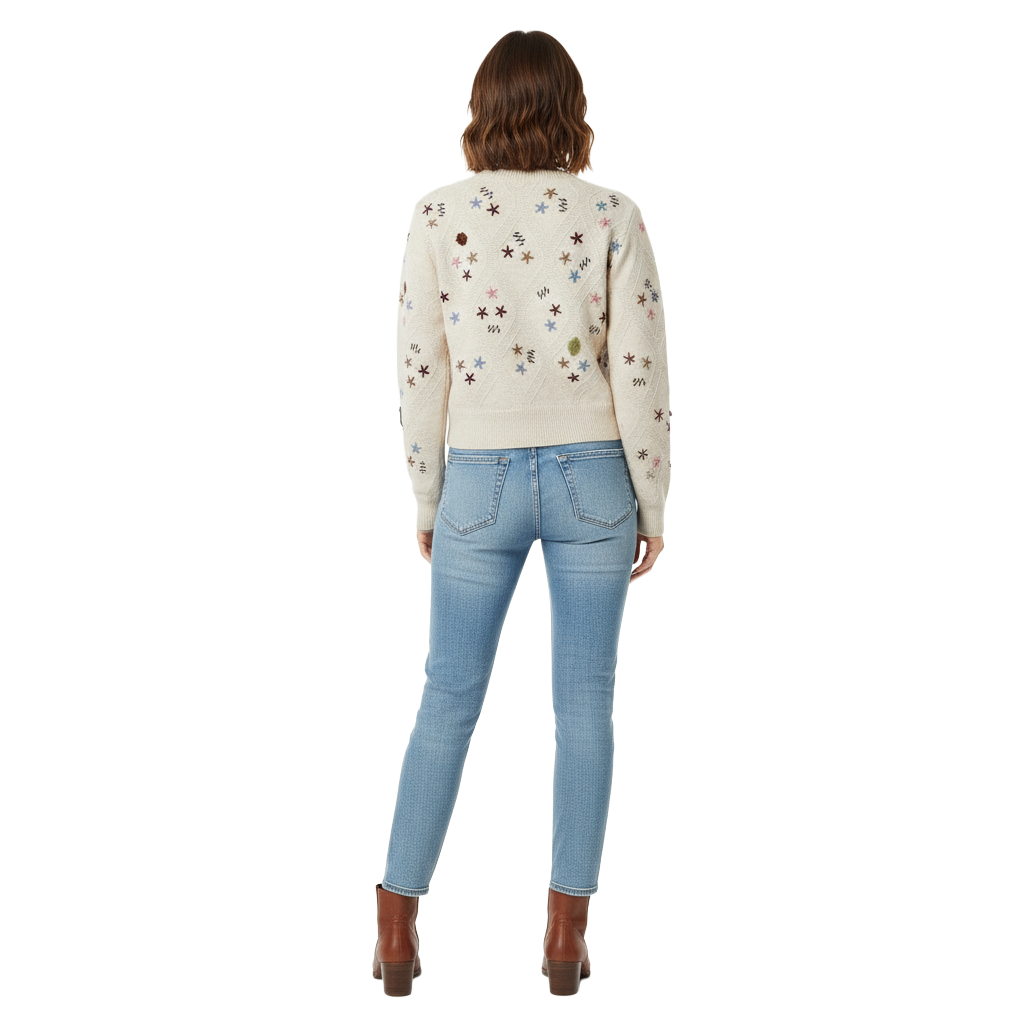 The Ivory Luz Sweater from Tolani is a blend of modernity and tradition, reflecting the rich culture and heritage of various regions. This women's knit sweater is designed for casual, everyday wear. It features a round neck and long sleeves, making it a versatile addition to your wardrobe. Made from a cozy blend of 20% wool and 80% acrylic, it offers warmth and comfort. Its missy fit adds a touch of femininity to your look. This sweater is easy to care for, requiring just a simple hand wash. Enjoy the contemporary style with a hint of global cultures in your day-to-day wear with Tolani.