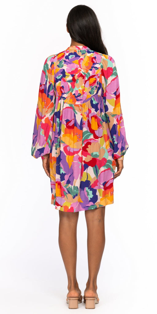 Bright, bold, and effortlessly chic—this flowy floral mini dress brings sunshine to any setting. With a relaxed silhouette, long blouson sleeves, and a flattering V-neckline, it’s perfect for brunch dates, garden parties, or summer getaways.